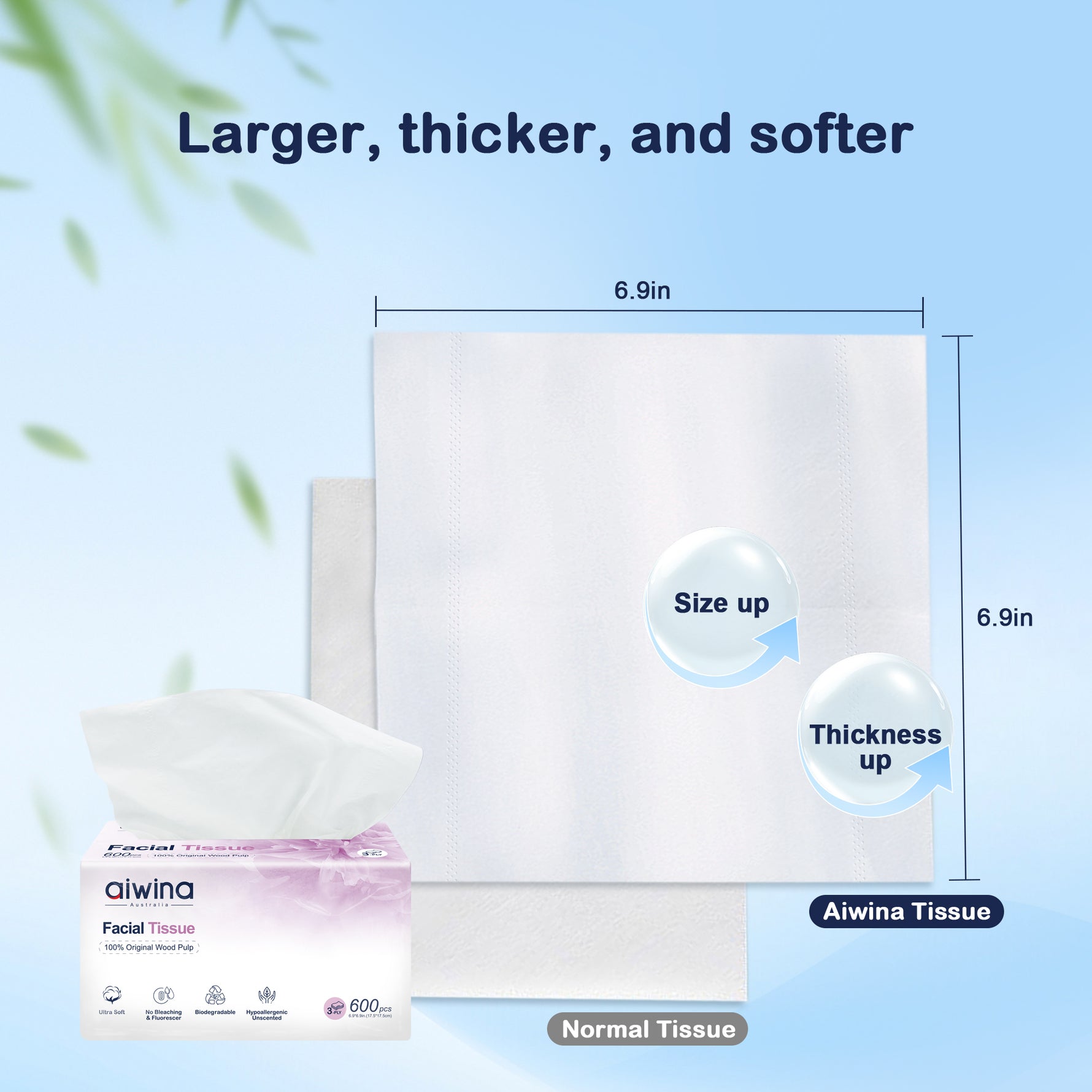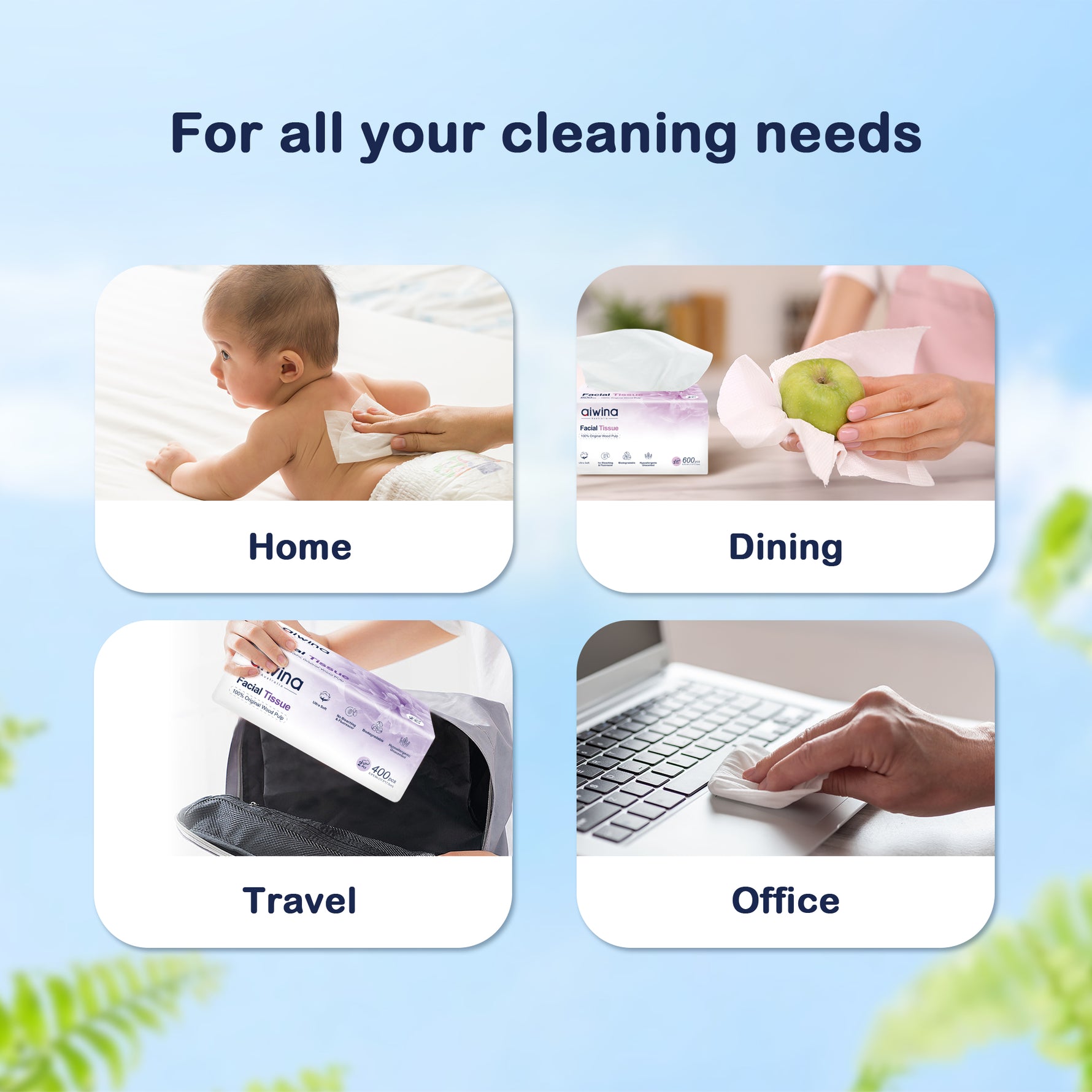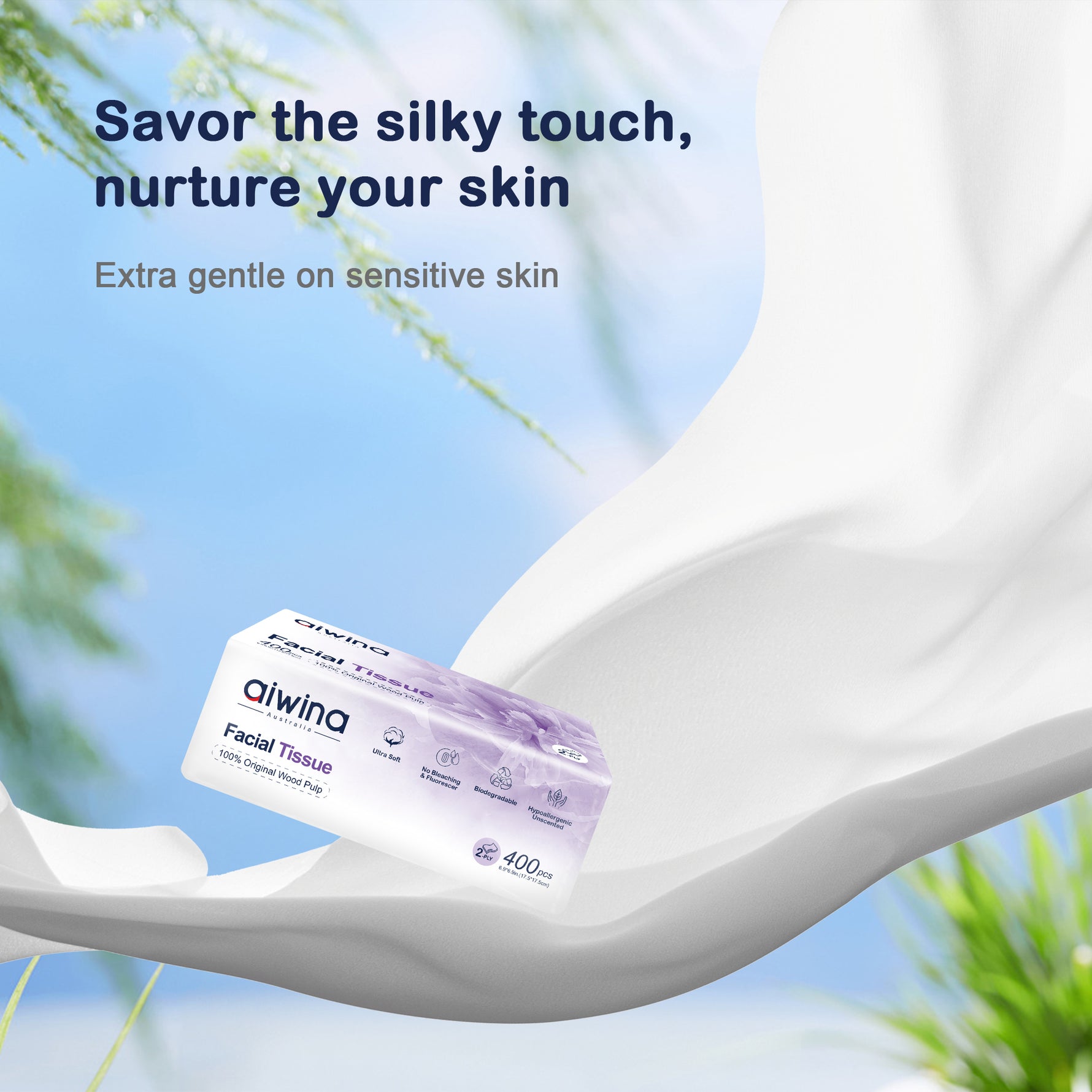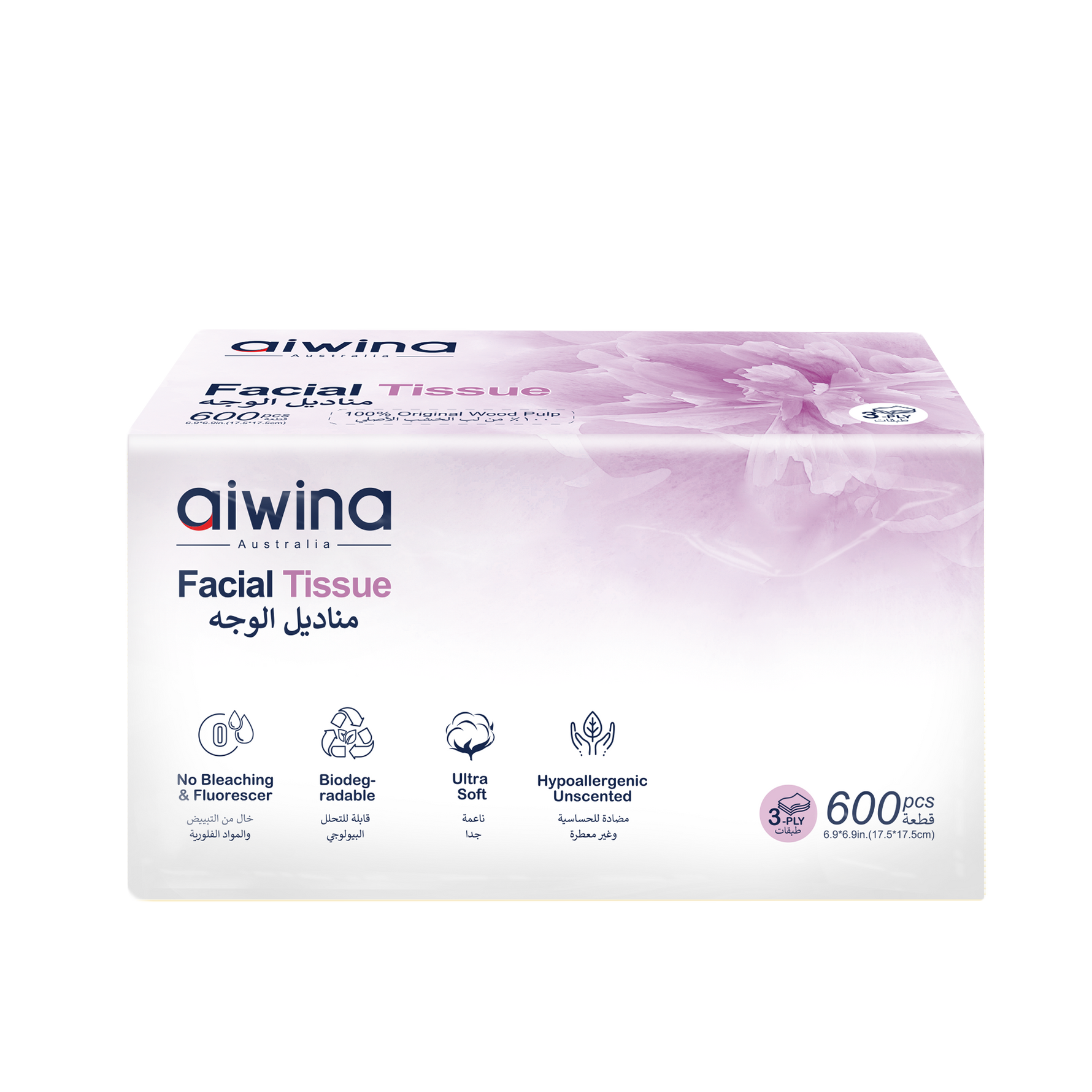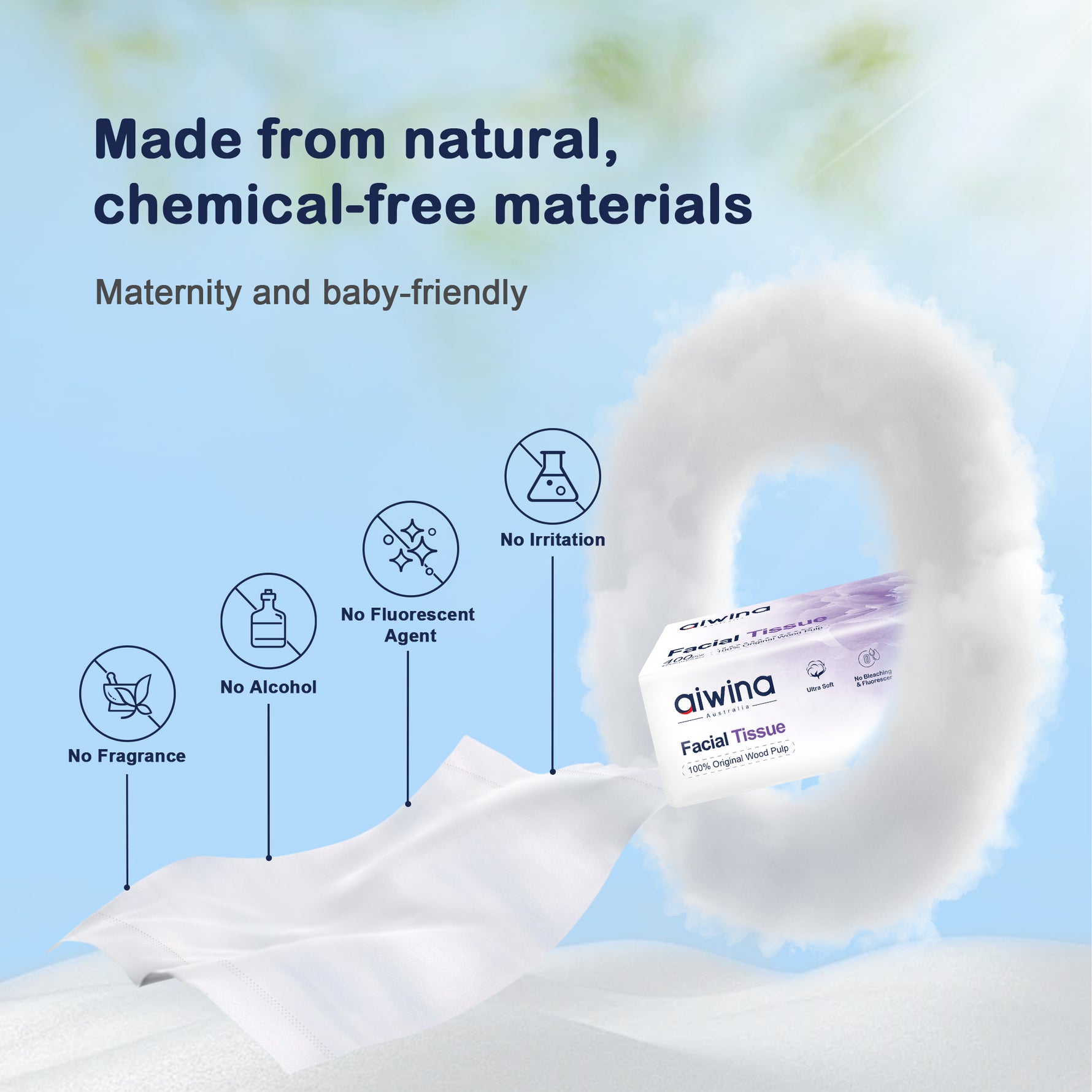مناديل الوجه ايوينا مصنوعة من لب الخشب الطبيعي بنسبة 100٪، مما يجعلها طبيعية وسميكة وصديقة للبشرة. المناديل فائقة النعومة، قابلة للتحلل الحيوي، ومضادة للحساسية وخالية من العطور، ولا تحتوي على مواد تبييض أو مواد فلورية. توفر ملمسًا حريريًا، وتكون لطيفة جدا على البشرة الحساسة. تتميز بتقنية الطبقات المتعددة السميكة، مما يجعلها قوية ومتينة، ولا تتعرض للتمزق بسهولة مع امتصاص إضافي. مصنوعة من ألياف طويلة وقصيرة معًا، لتعزيز المتانة وضمان نعومة وقوة مثالية.