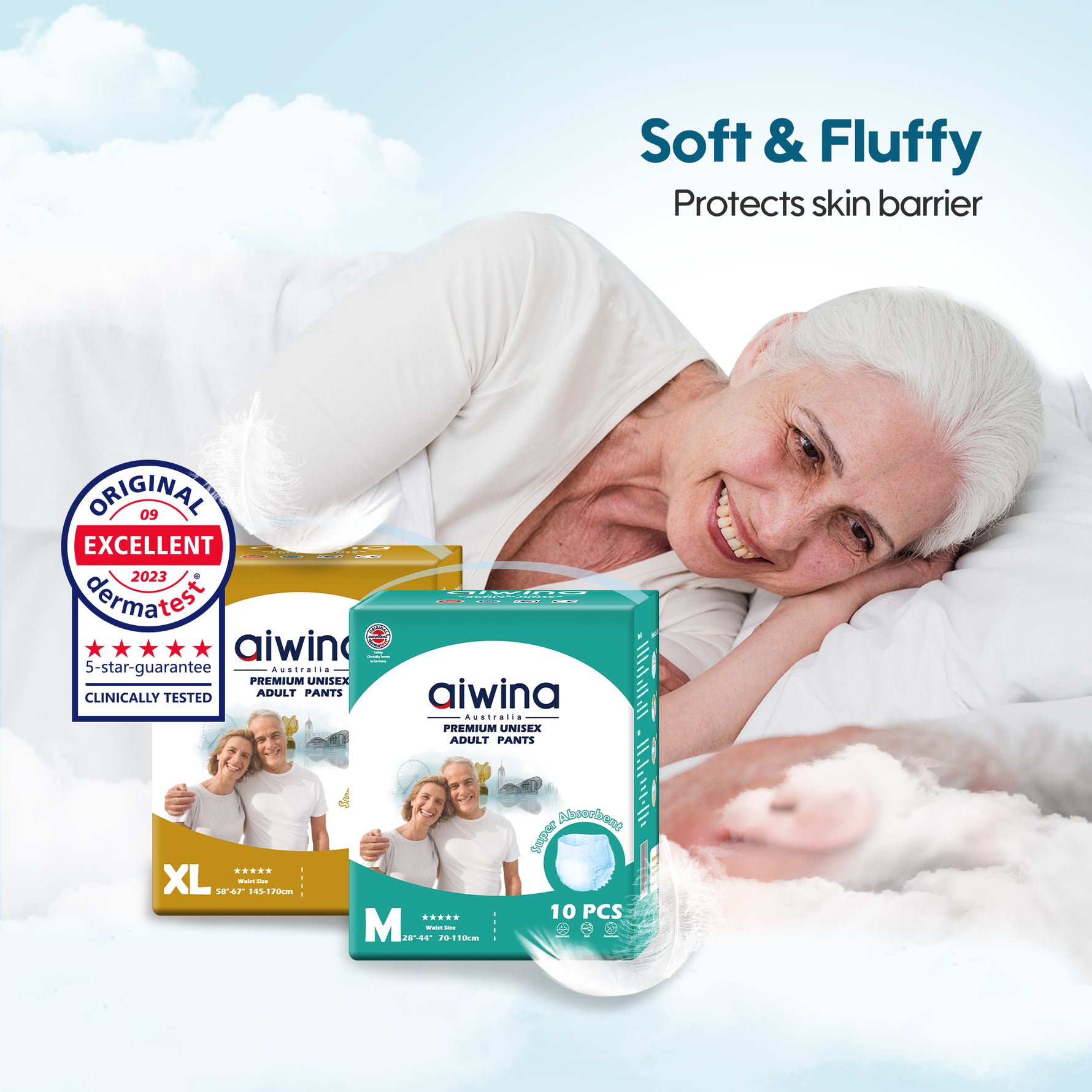 سراويل أيوينا للكبار، مصنوعة من مواد من أفضل الماركات العالمية، وهي مضادة للحساسية، وخالية من العطور والبارابين، وذات حموضة خفيفة قريبة من درجة حموضة الجلد، ولا تسبب تهيجًا للجلد. طبقة لطيفة على البشرة، بالإضافة إلى مواد ناعمة وجيدة التهوية، تساعد على دوران الهواء وتحمي البشرة. تساعد نواة الامتصاص على إبعاد السوائل بفعالية عن الجلد، مع حواجز جانبية توفر راحةً وأمانًا للبشرة. سراويل أيوينا للكبار، تقدم أفضل رعاية لمن يحتاجونها.