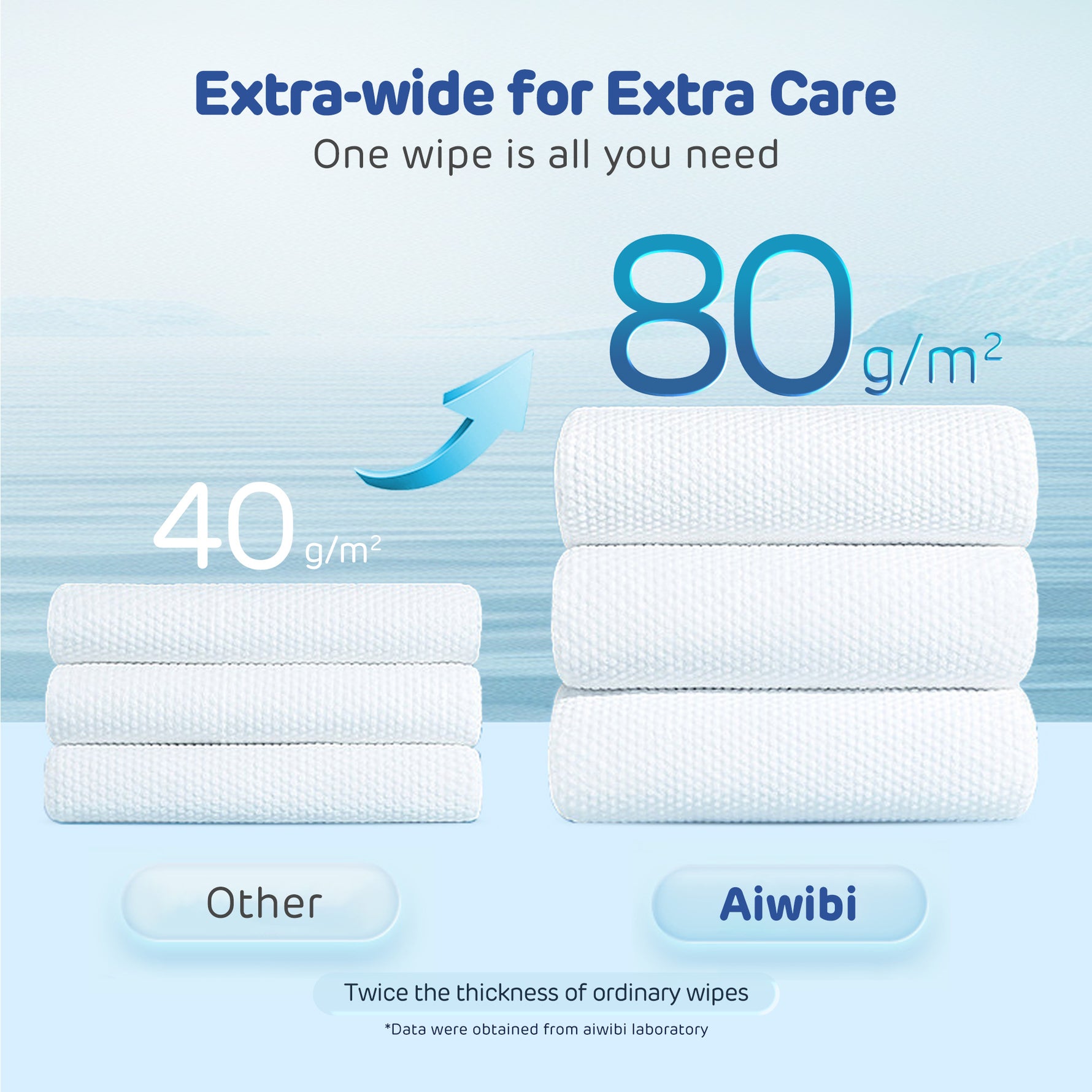 مناديل Aiwibi أكثر سمكًا ونعومة، وتوفر تجربة تنظيف فاخرة مع كونها مضادة للحساسية وخالية من المواد المهيجة.