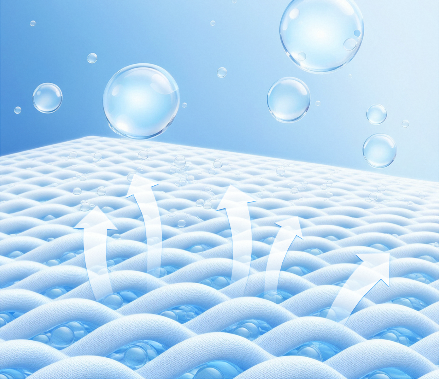 Our unique MicroAiry Film™ features a super soft PE film integrated with billions of ultra-fine micro-pores, delivering exceptional breathability. With an impressive air permeability of 2500g/(m²*24h), it allows air to circulate freely while preventing moisture from reaching your baby's delicate skin. Enjoy enhanced breathability by 50%, ensuring your little one stays dry and comfortable with every breath.