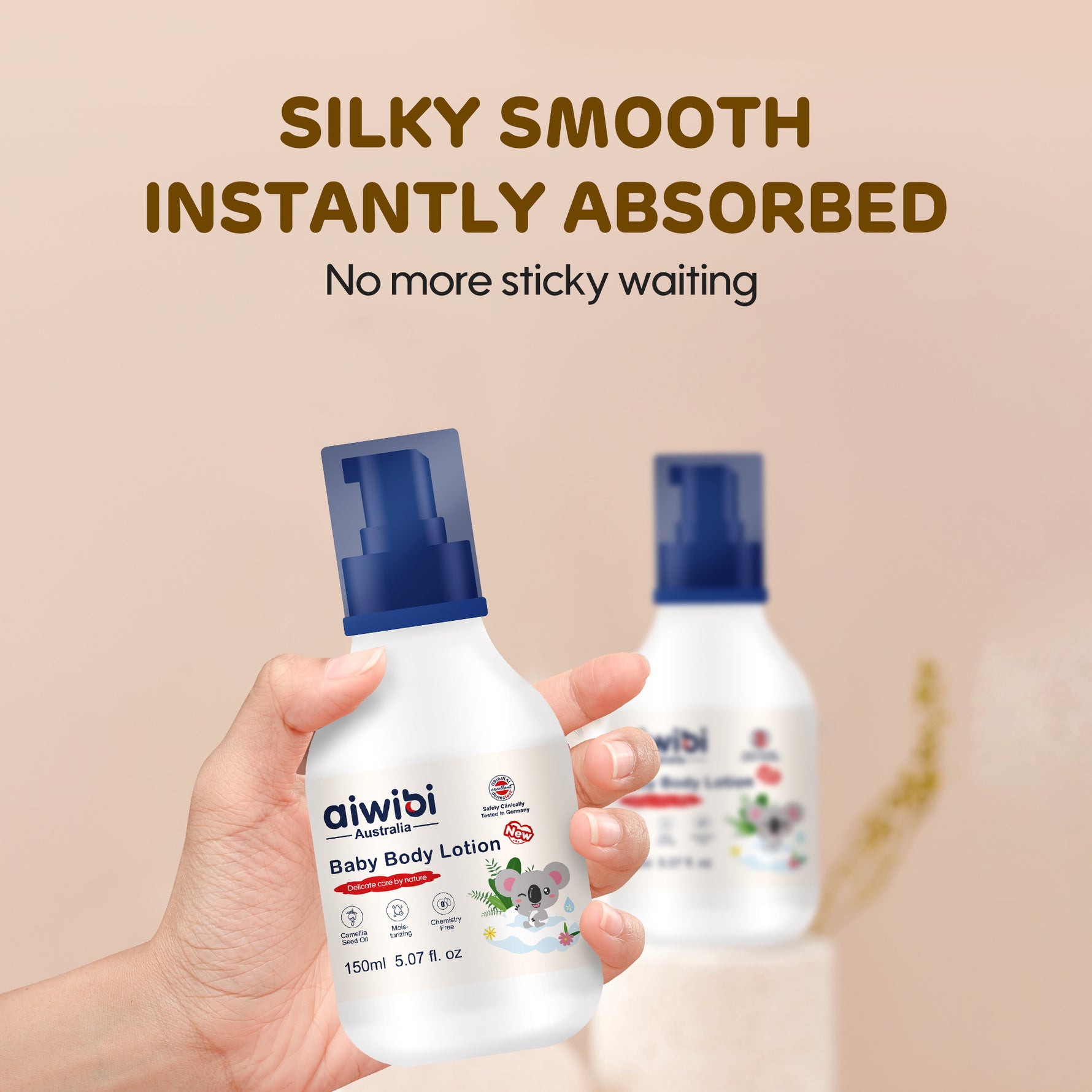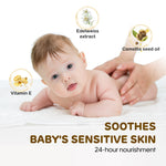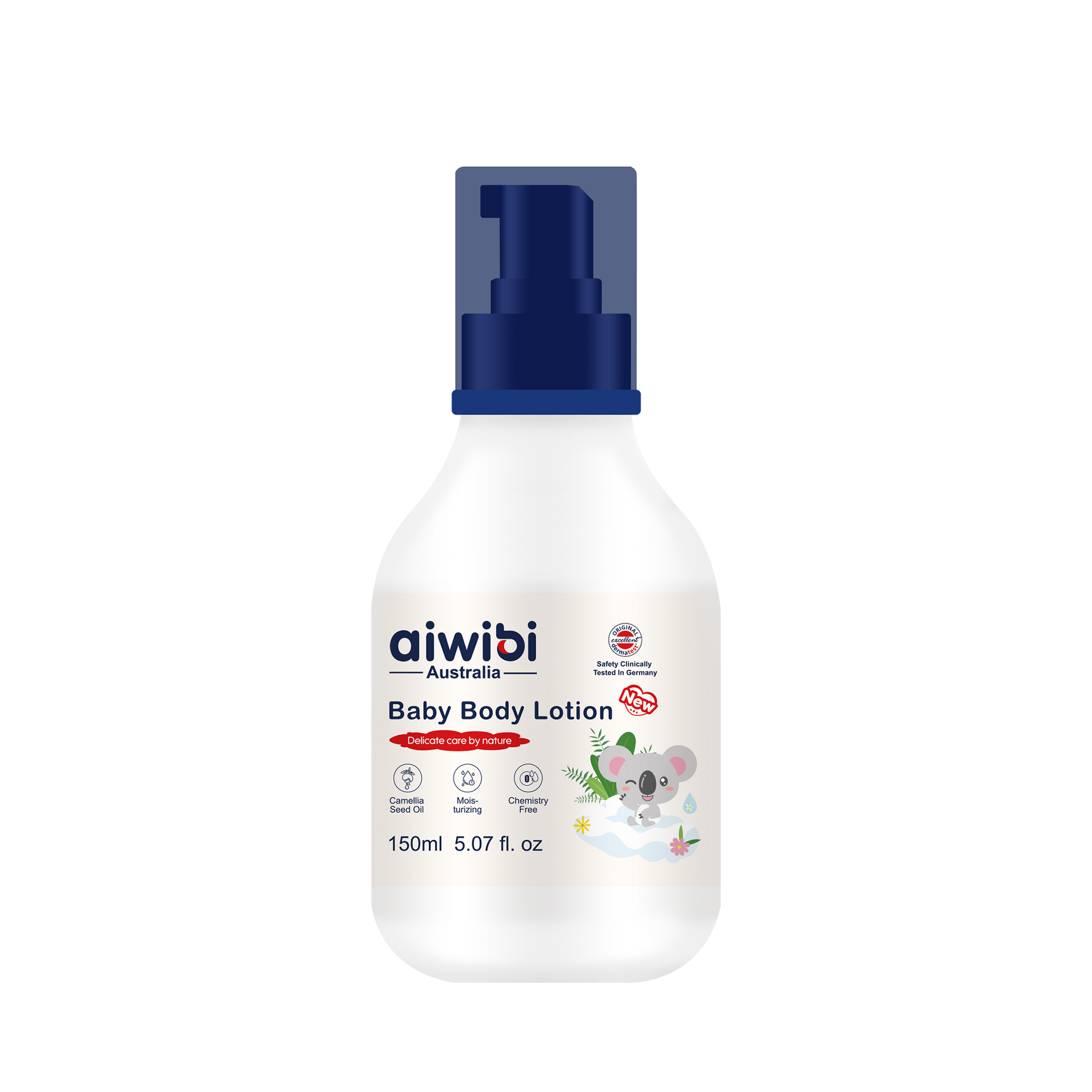 لوشن جسم الأطفال اي ويبي مغذى بمكونات طبيعية مثل فيتامين E وزيت بذور الكاميليا، مما يوفر تغذية لطيفة وفعالة لبشرة طفلك.