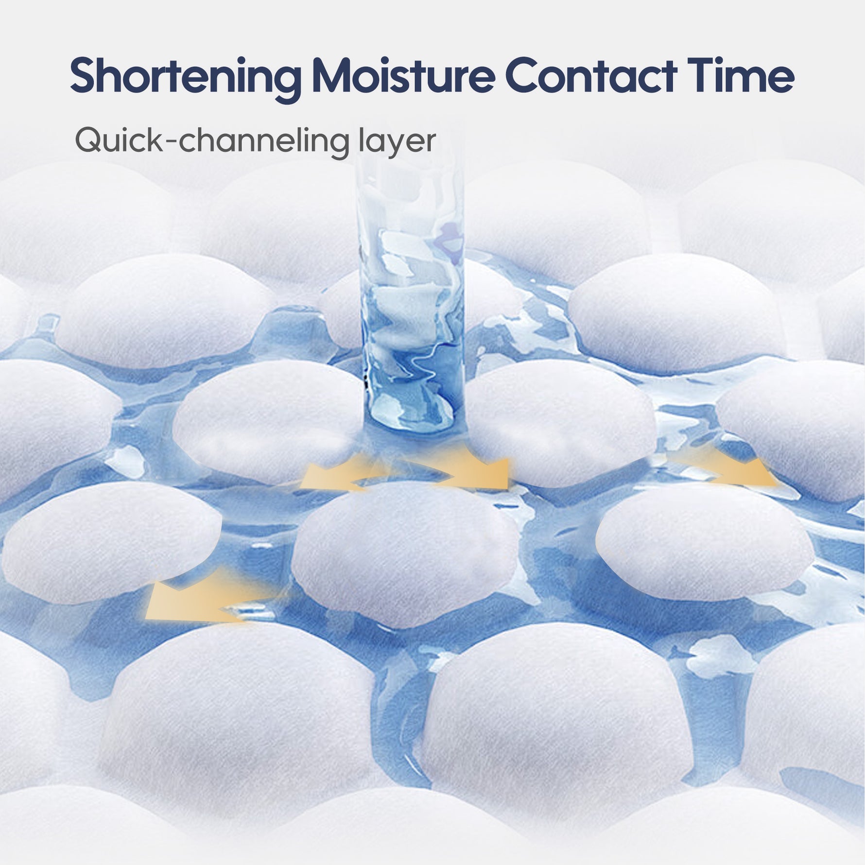 مصنوعة من 100% SAP ياباني متميز، تقوم بسرعة بحبس كميات كبيرة من الرطوبة.