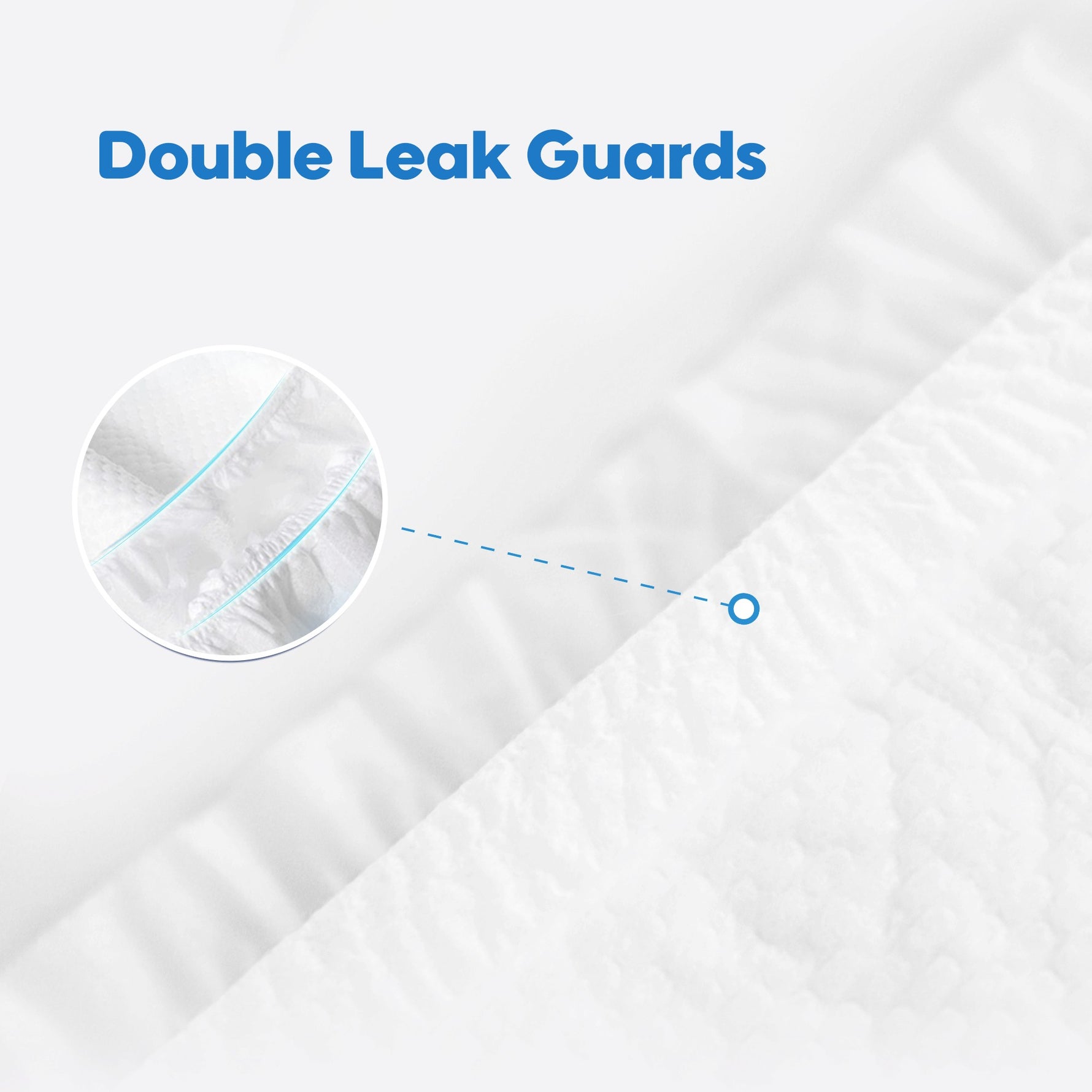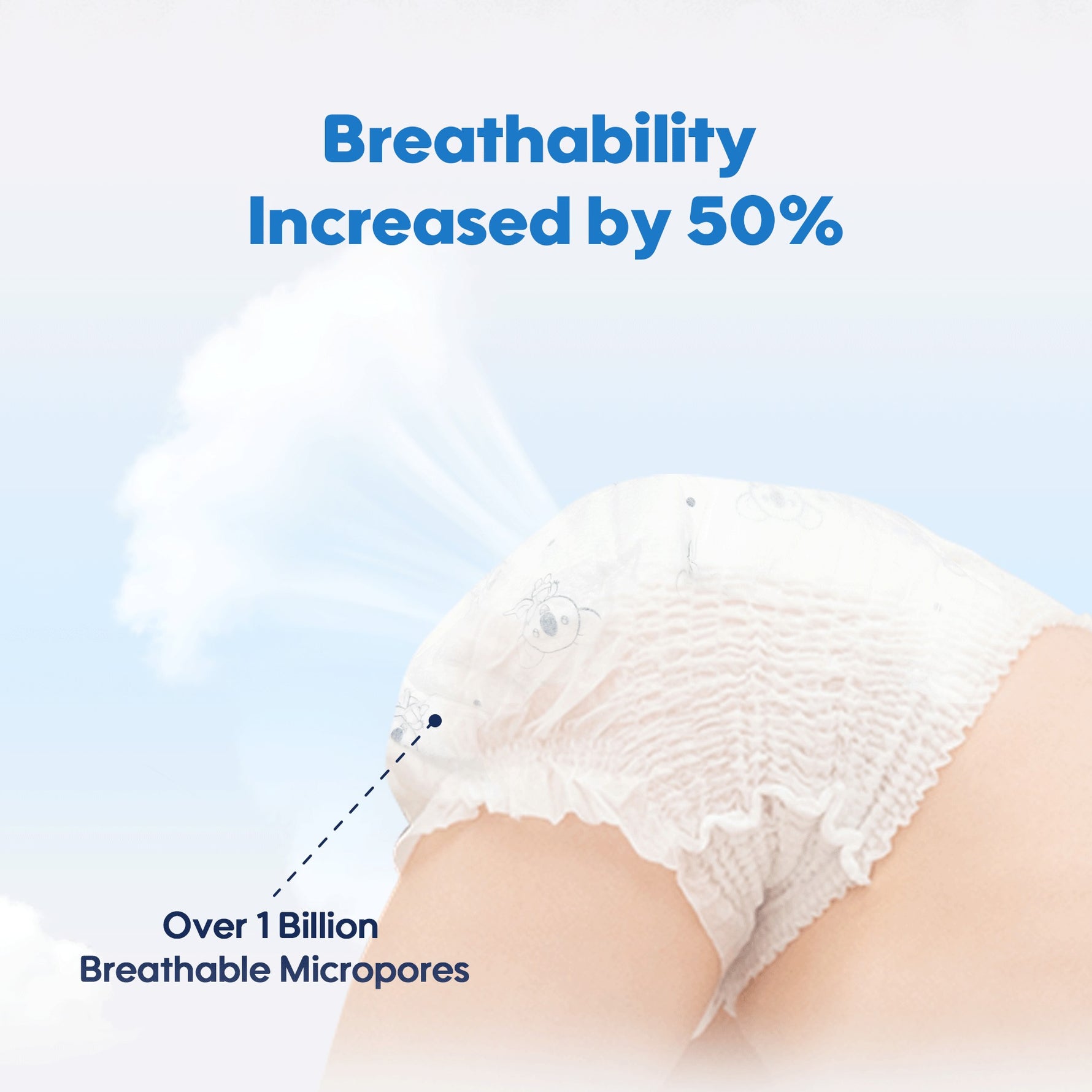 تتميز بحشوة امتصاص فائقة الرقة بسمك 2 مم، تم تصميم هذه المنتجات لتكون قابلة للتنفس وخفيفة الوزن، مما يمنع التكتل مع ضمان أداء مستمر. يسمح غشاء ميكرو هوائي™ المبتكر بتدفق الهواء بشكل مثالي، مما يحافظ على بشرة طفلك منعشة وجافة. مع حزام الخصر المريح™ وورقة العلوية بتصميم 3D لؤلؤي التي تعزز التهوية بنسبة 30%، يتمتع صغيرك براحة طوال اليوم. مزودة بحواجز تسرب مزدوجة، وطبقة تجفيف سريع، ومؤشر للرطوبة، توفر هذه الحفاضات حماية موثوقة بينما تظل لطيفة على البشرة الحساسة.